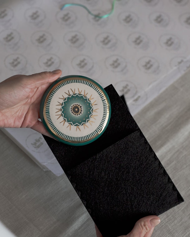 1. Sınıf kaliteli seramik çamurundan modelleme sonrası ilk kez, sır için ikinci ve eşsiz altın yaldız ışıltısı için de 3. kez fırınlanmaktadır.