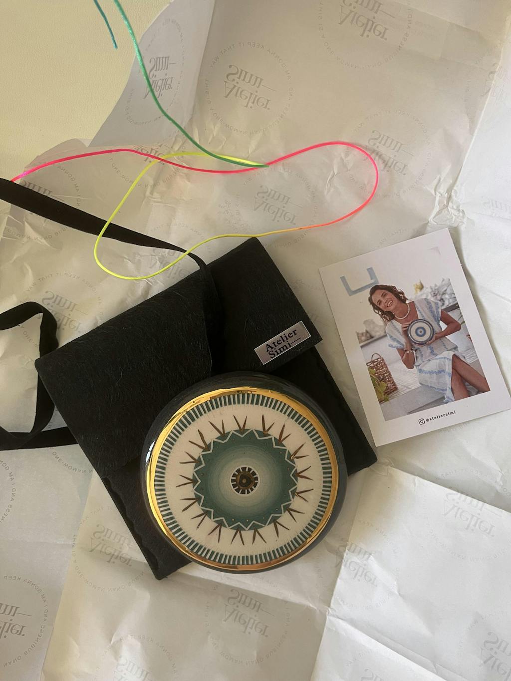 The round shaped amulets are produced in 4 different sizes and each one is offered for sale with its own gift bag.