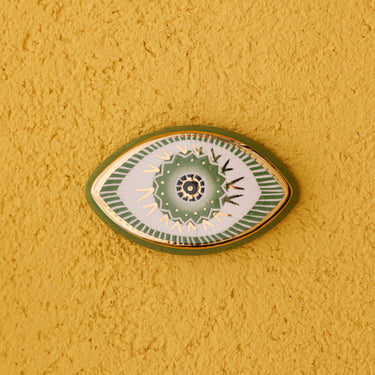 Eye-shaped amulets are produced in two different sizes and each is sold with its own gift bag.