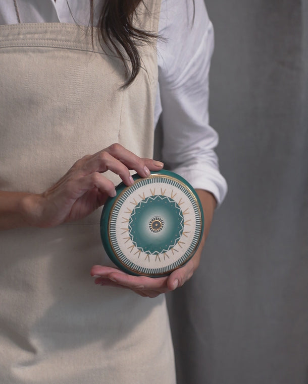 1. Sınıf kaliteli seramik çamurundan modelleme sonrası ilk kez, sır için ikinci ve eşsiz altın yaldız ışıltısı için de 3. kez fırınlanmaktadır.